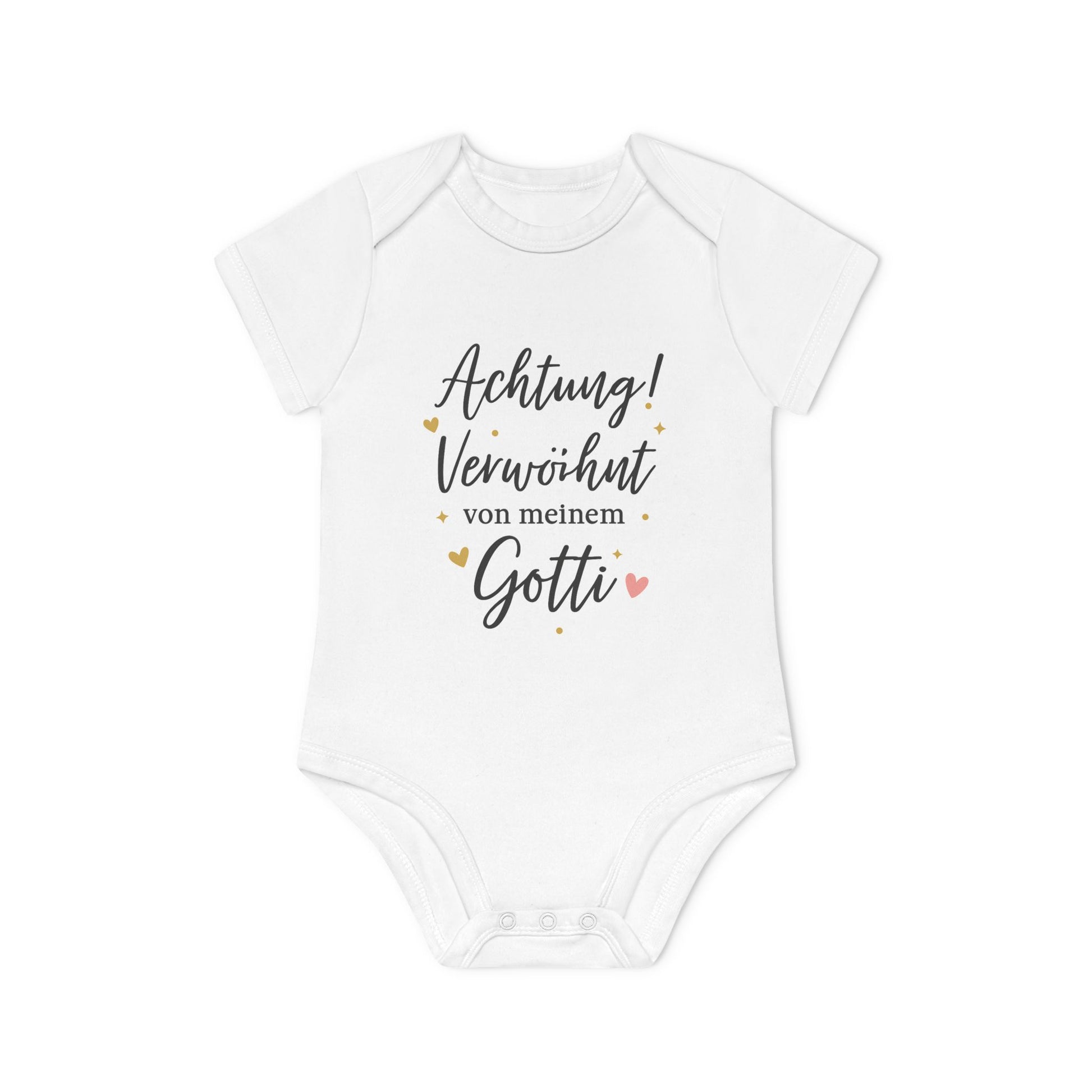 Baby Body „Achtung! Verwöhnt von meinem Gotti“ – Bio-Baumwolle, elegantes Design in Schwarz-Gold mit Herz