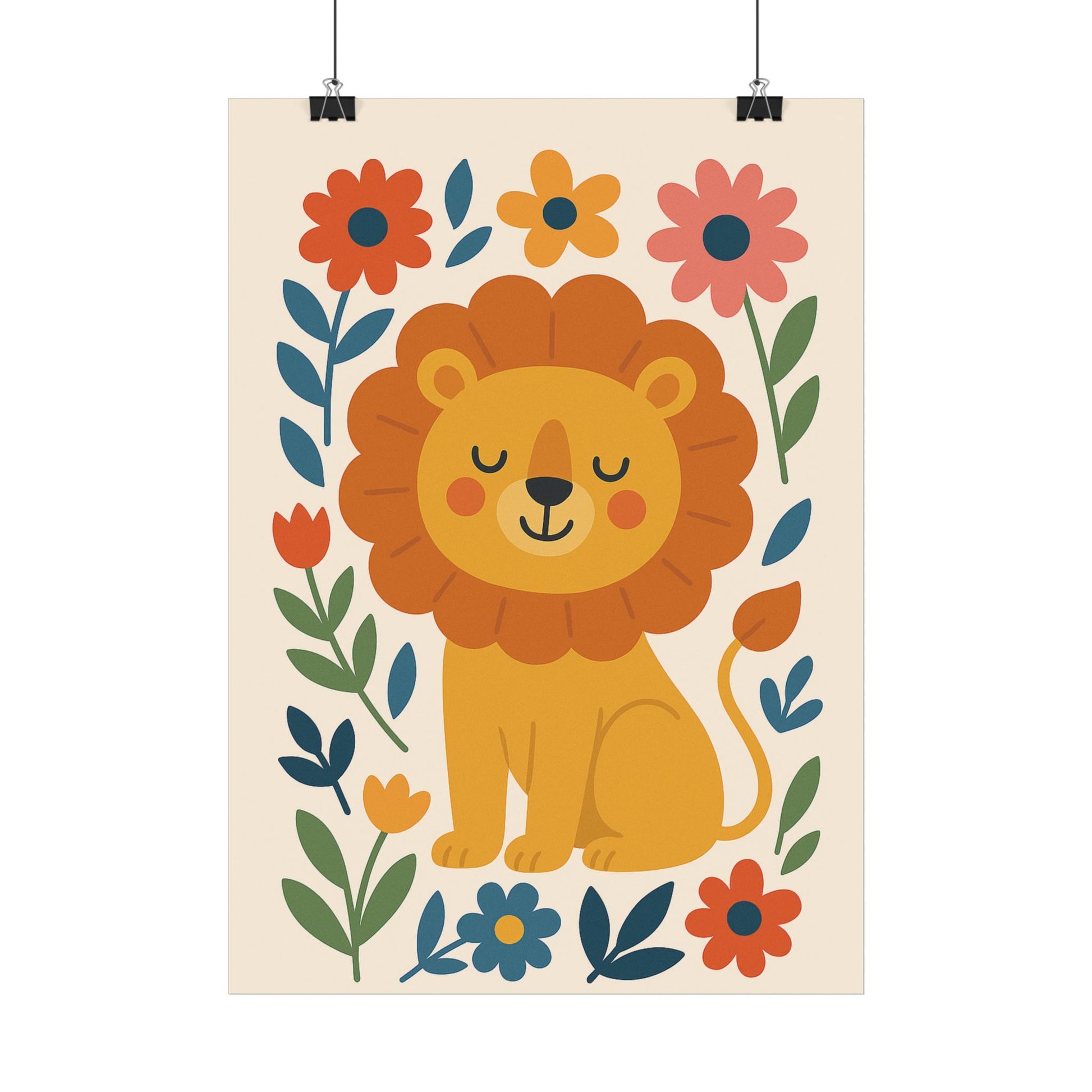 Dieses farbenfrohe Poster zeigt einen niedlichen Löwen in einem liebevoll gestalteten Design – perfekt für kleine Abenteurer und mutige Träumer. Die freundliche Farbgebung in warmen Tönen, kombiniert mit spielerischen Elementen wie Wolken, Sternen und Sonne, schafft eine fröhliche und kindgerechte Atmosphäre.