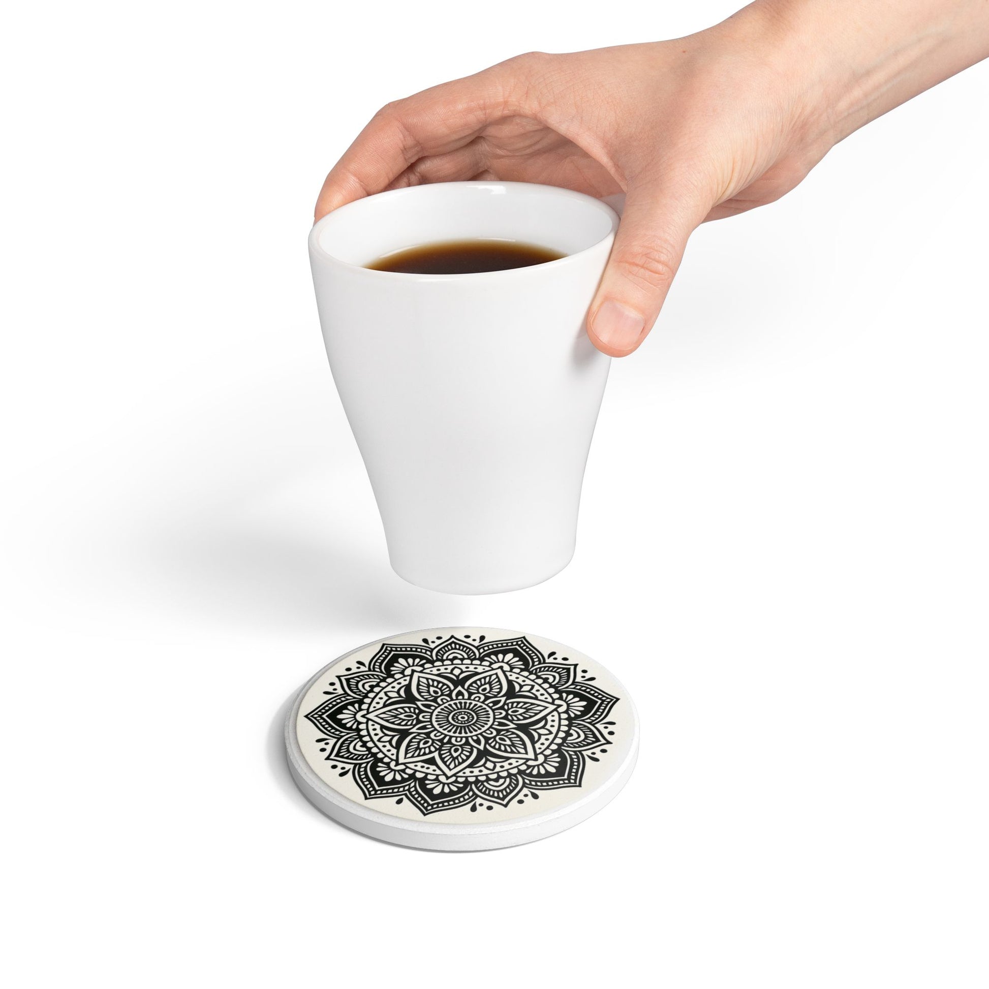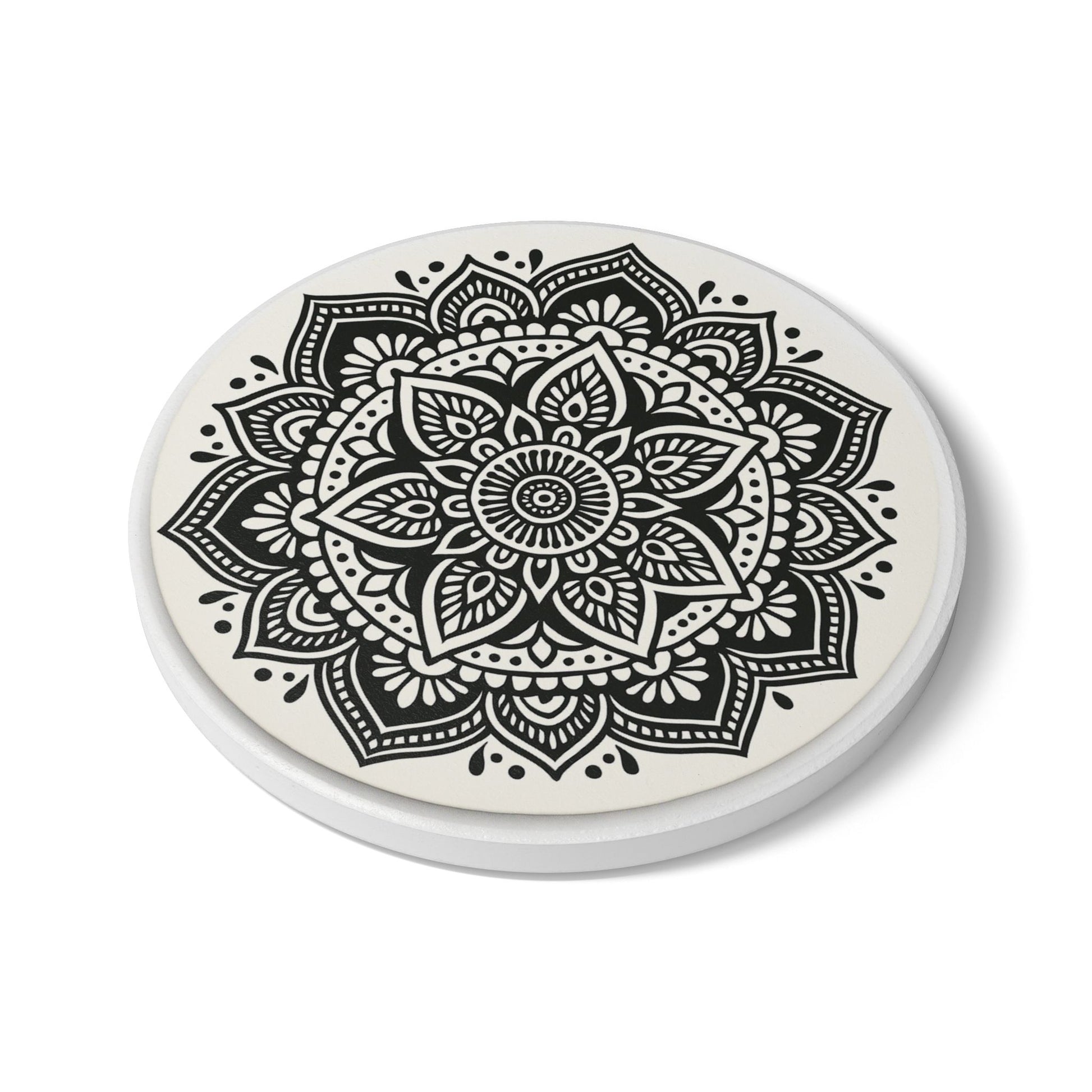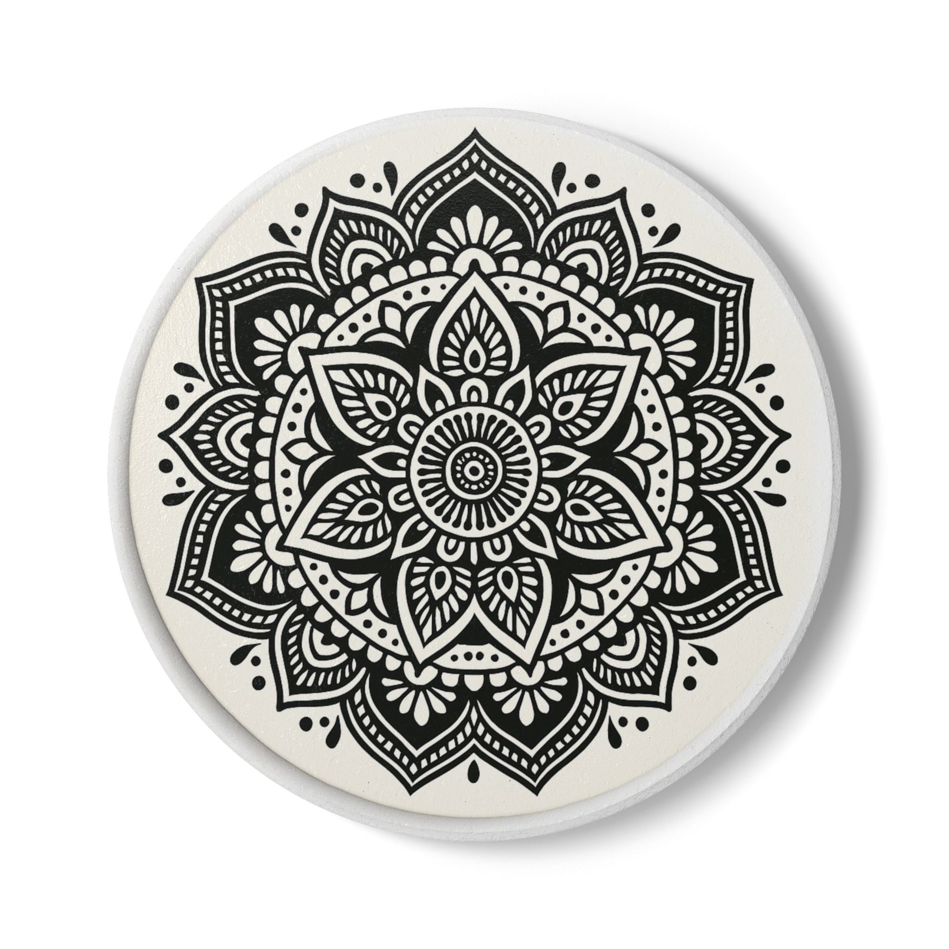 Tauche ein in die Welt der Harmonie und Balance mit diesem stilvollen Mandala-Untersetzer. Das kunstvoll symmetrische Schwarz-Weiß-Design wirkt beruhigend und ästhetisch zugleich – perfekt für Meditationsräume, kreative Schreibtische oder stilvolle Wohnzimmer. Der ideale Begleiter für deinen Tee- oder Kaffeegenuss mit spiritueller Note.