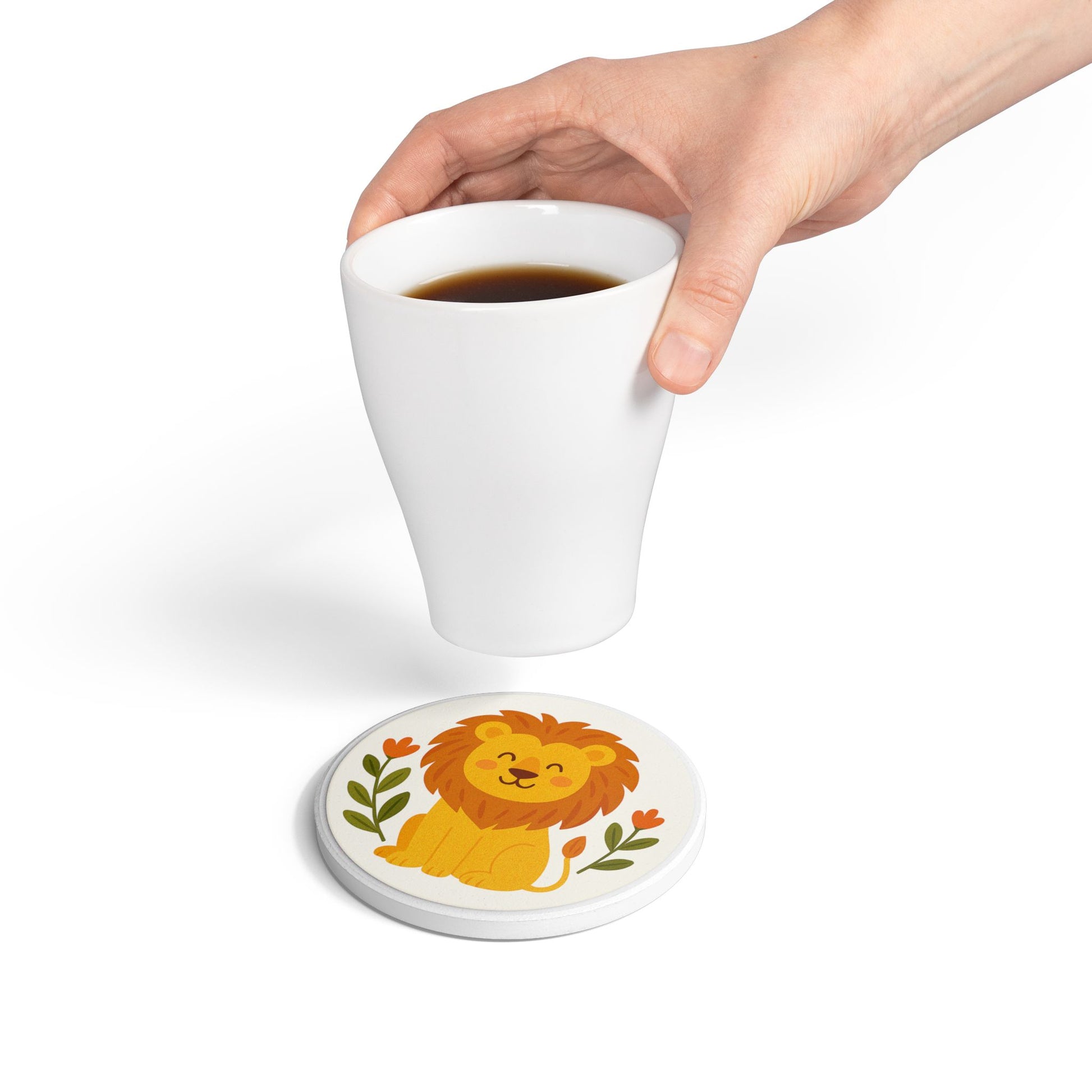 Dieser farbenfrohe Untersetzer mit einem niedlichen, aber majestätischen Löwenmotiv ist nicht nur ein Hingucker, sondern schützt auch stilvoll deine Oberflächen vor Tassenflecken. Perfekt für Tierfreunde, Kinderzimmer, Büros oder einfach als fröhliches Deko-Element.
