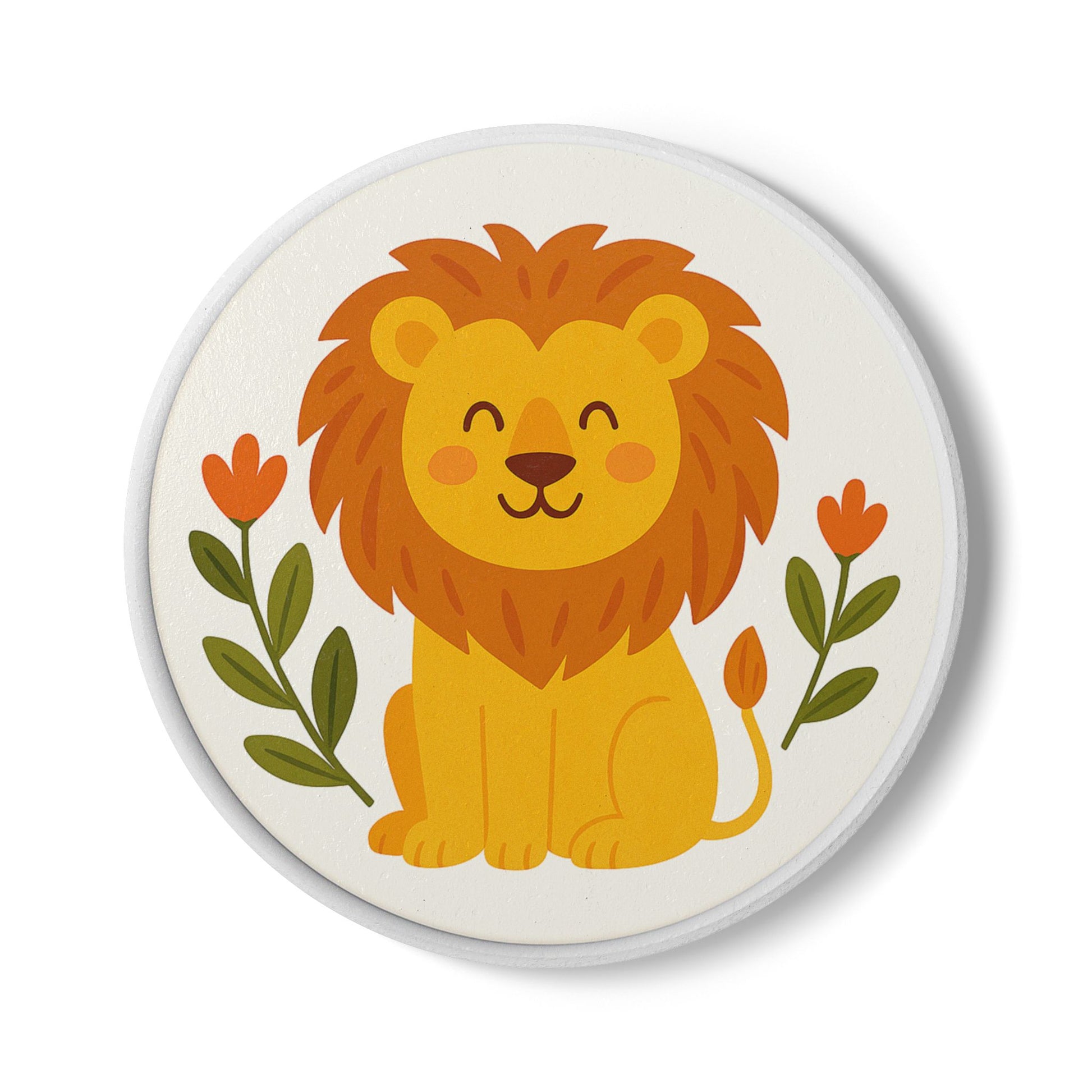 Mutiger Löwe – Runder Untersetzer mit farbigem Tiermotiv