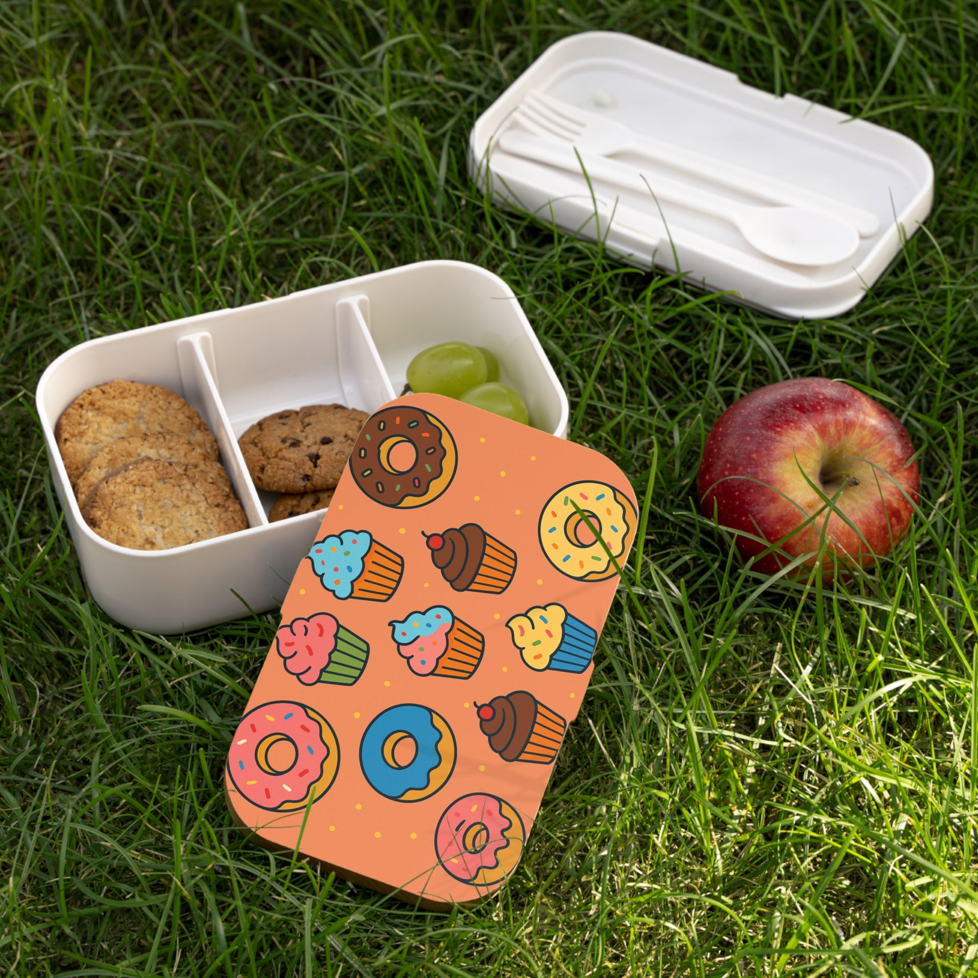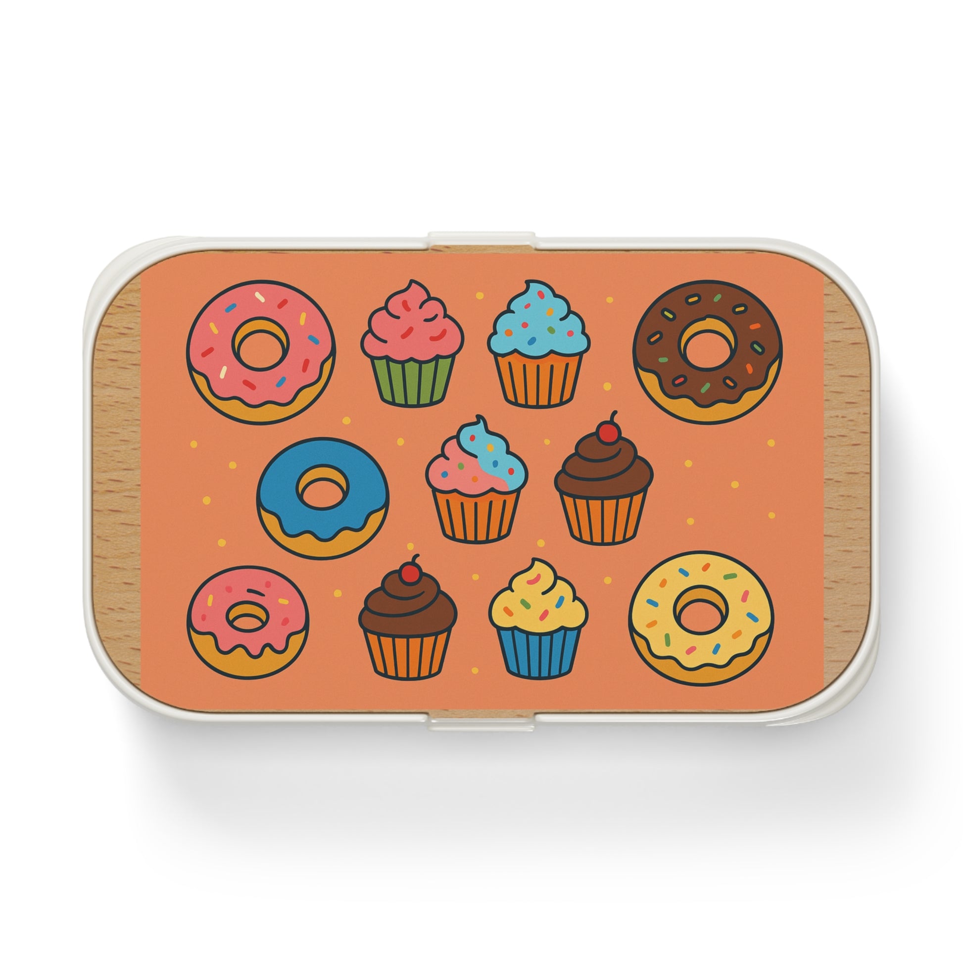Dieses verspielte Motiv voller Donuts und Cupcakes bringt gute Laune in jede Pause! Leuchtende Farben, fröhliche Zuckerguss-Designs und bunte Streusel machen die Lunchbox zu einem echten Hingucker. Perfekt für alle, die Süßes lieben und sich von fröhlichen, bunten Designs begeistern lassen.